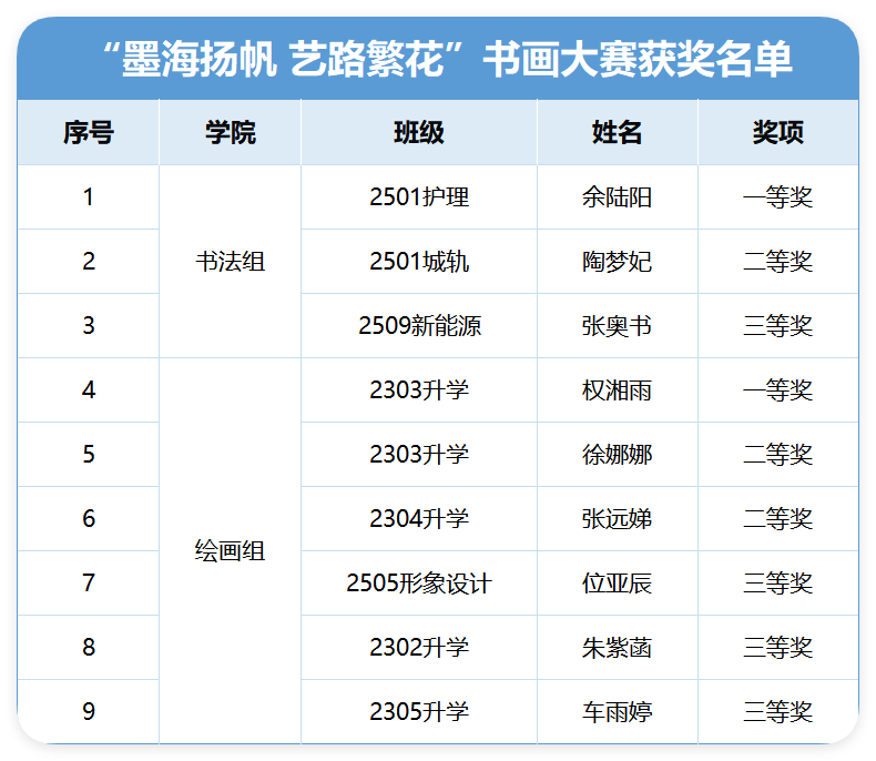 大赛最终评选出书法类、绘画类一、二、三等奖各若干名,获奖作品已在一教一楼大厅公开展出,进一步营造浓厚的校园艺术氛围。此次大赛不仅为学生提供了展示自我的舞台,更推动了中华优秀传统文化在校园的传承与发展。未来,我校将持续开展丰富多彩的文化艺术活动,助力学生全面成长。